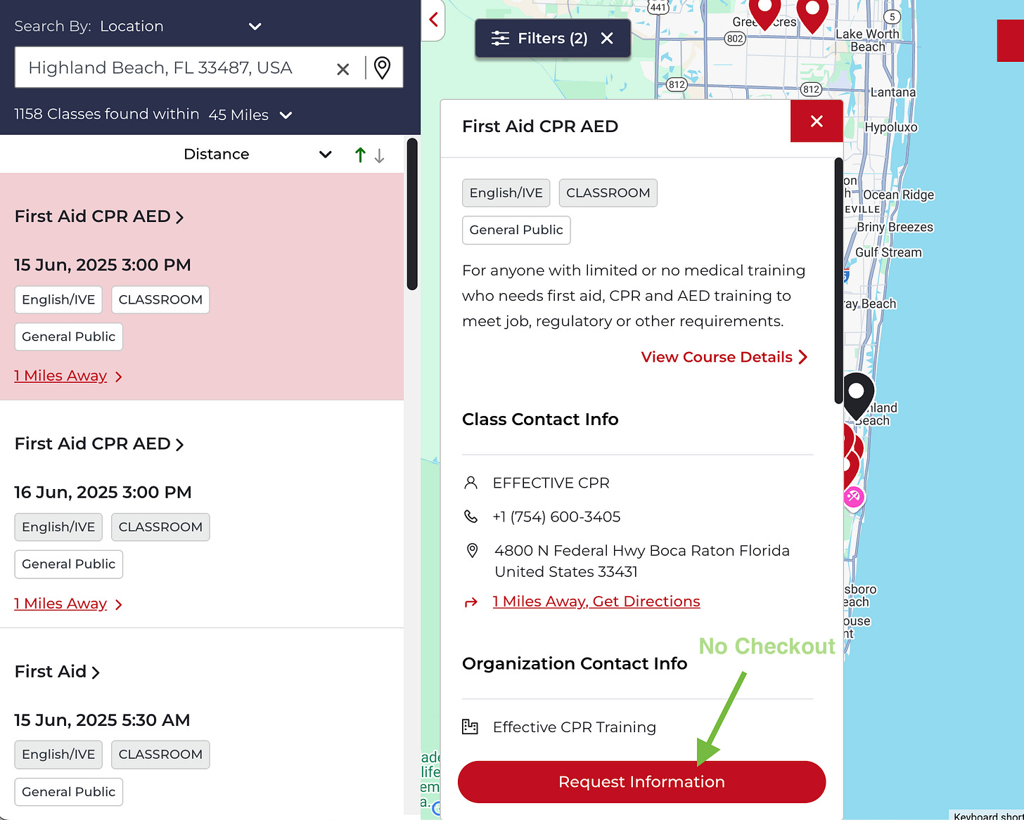 Students can’t book—only “Request Information.” Extra step = extra drop-offs.