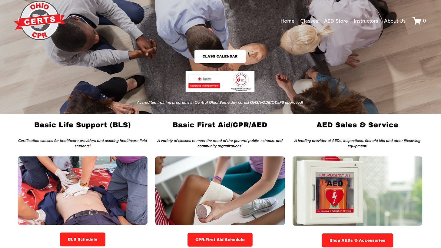 Evan runs OhioCPRCerts.com out of Columbus. Training center, four locations, six instructors, seventy-five affiliated instructors.